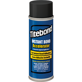 Titebond Accelerator has been developed as a treating agent for use with Titebond's Instant Bond adhesives. If faster setting speeds are desired, Titebond's Accelerator will aid the curing process and give faster set times. It will allow for faster uniform curing. The accelerator will aid the bonding of porous materials such as wo...